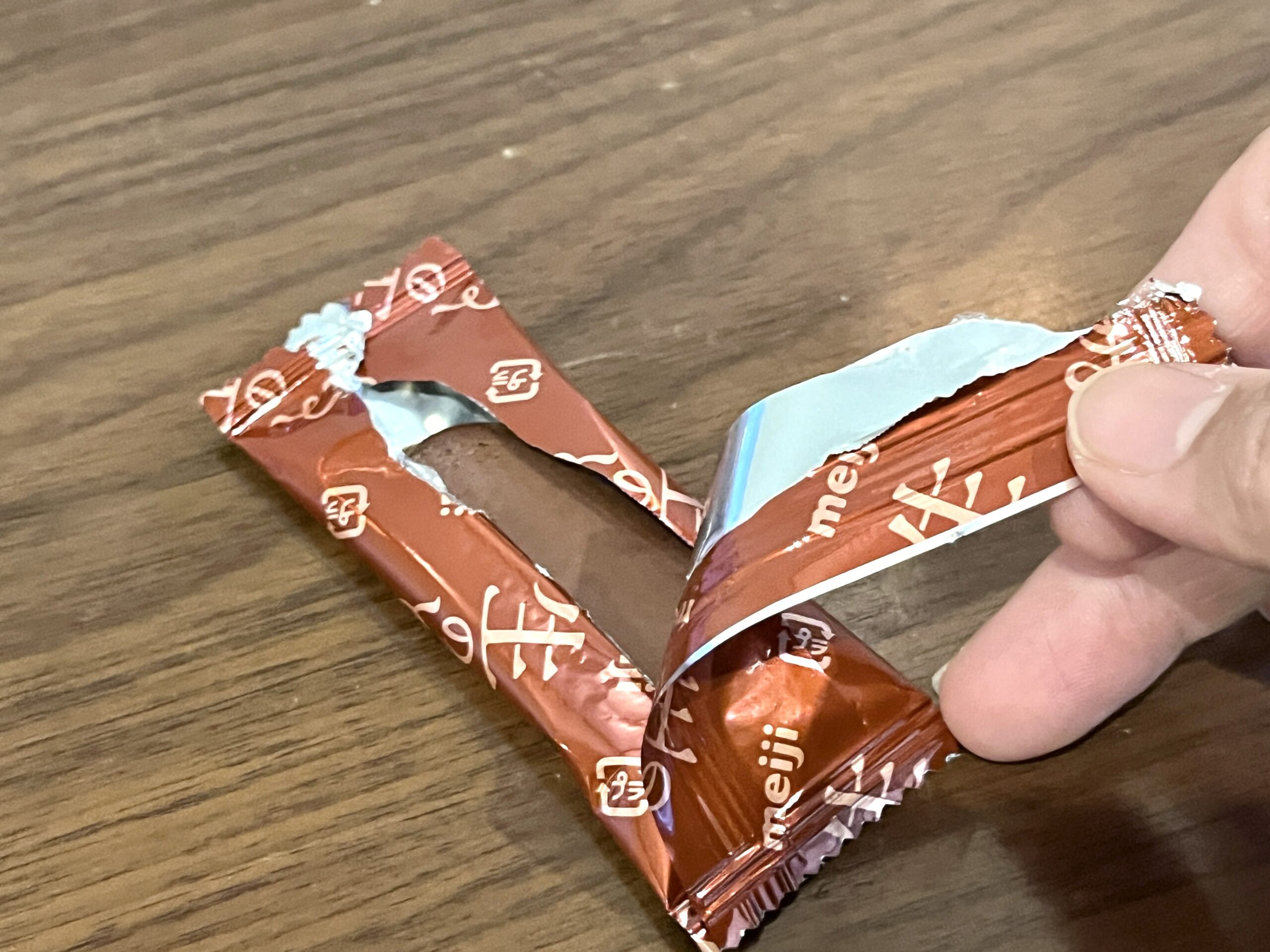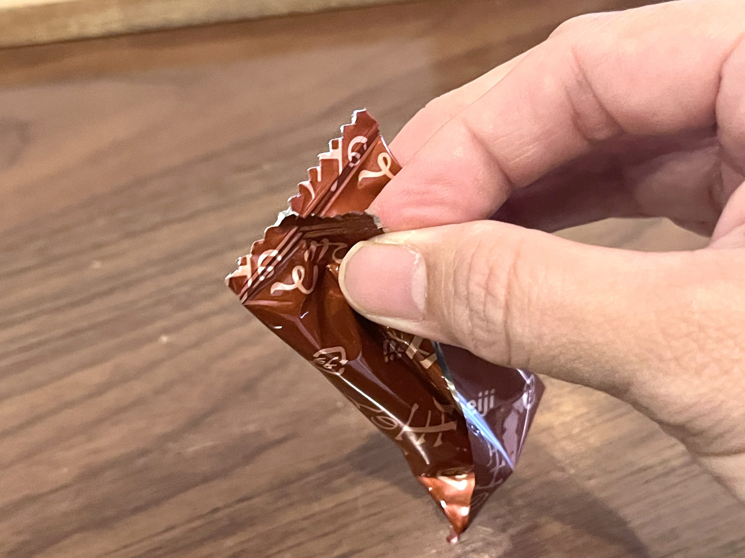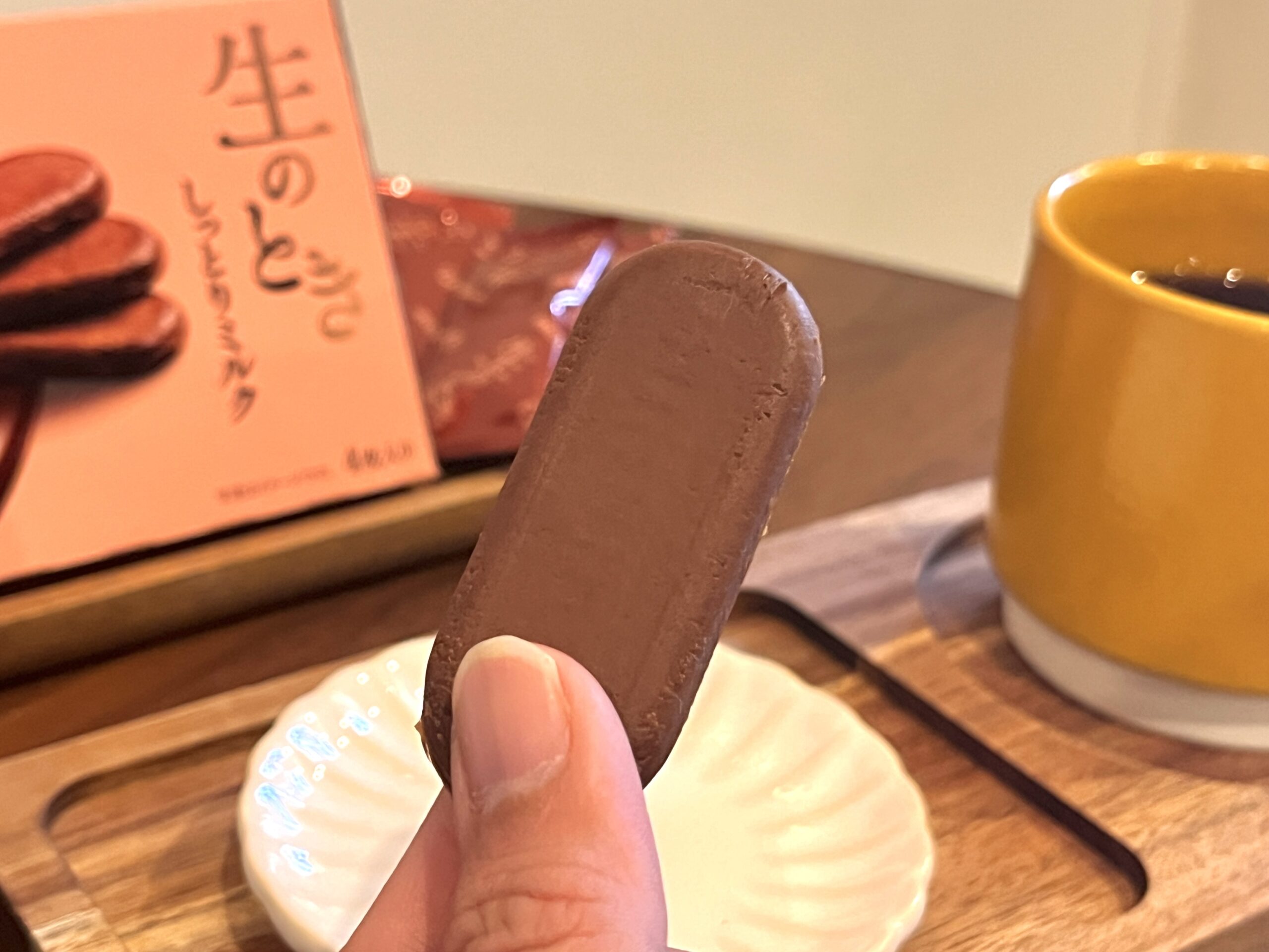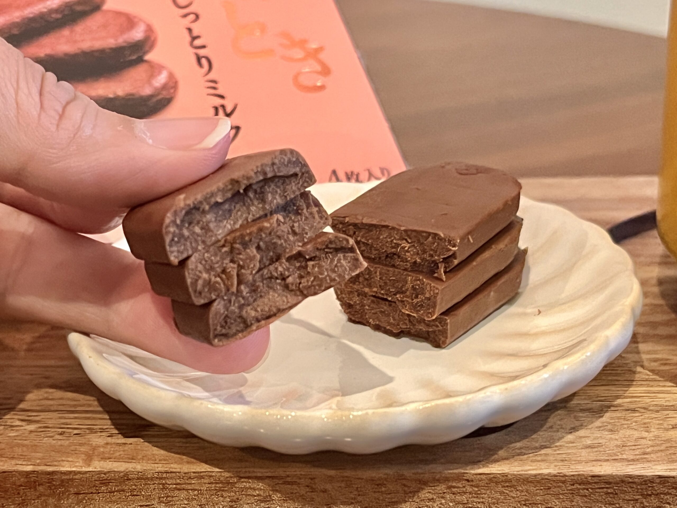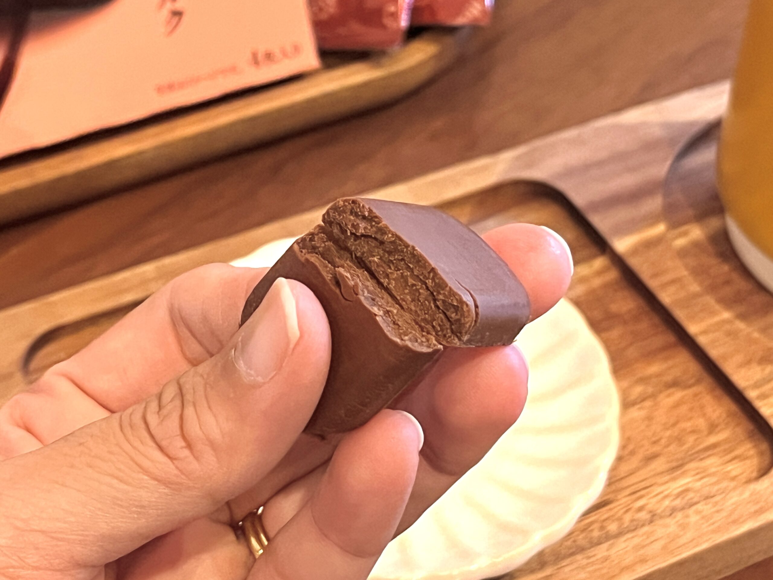 手にもった瞬間から柔らかさを感じます。噛むと板チョコほど硬くなく、生チョコほどやわらかくもない絶妙な食感。