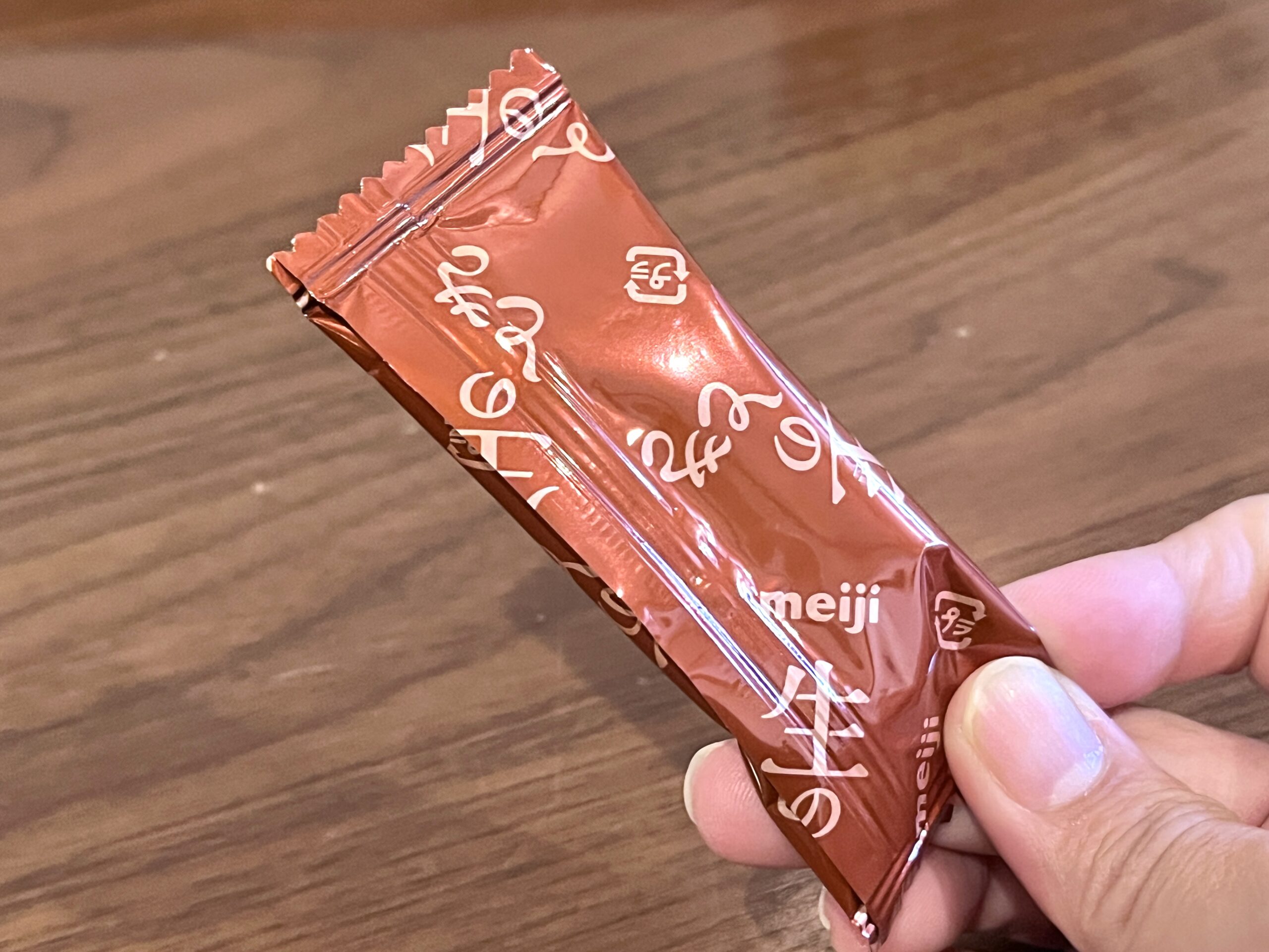 明治独自の特許技術「生ねり製法」によって生まれた新ジャンルのお菓子。やわらかさと保存性を両立させた絶妙な水分バランスを実現するため、日本チョコレート・ココア協会が定める「チョコレート」の規格から外れたため、チョコレートとは表記していないのです。