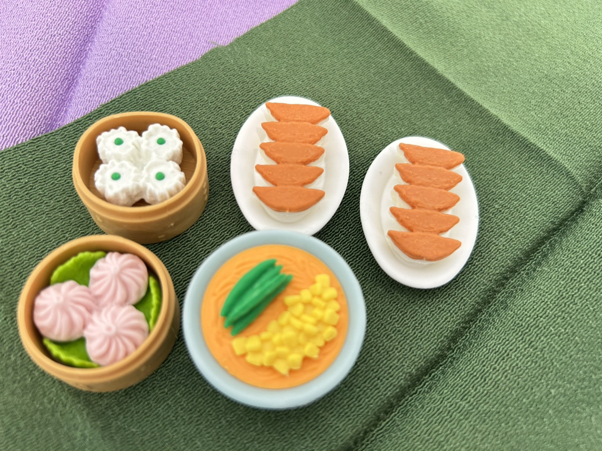 The “Chinese Food” erasers come in two types: main dishes and dim sum.