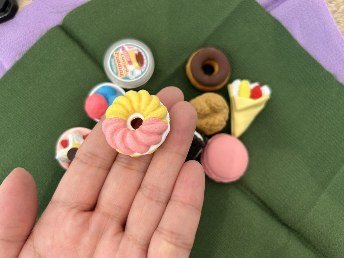 The parfait actually appears in two different sets, but they’re not identical—so no need to worry about duplicates. The pudding comes in a case, and you can actually take it out. Only the pudding itself is an eraser, which makes it even cuter!