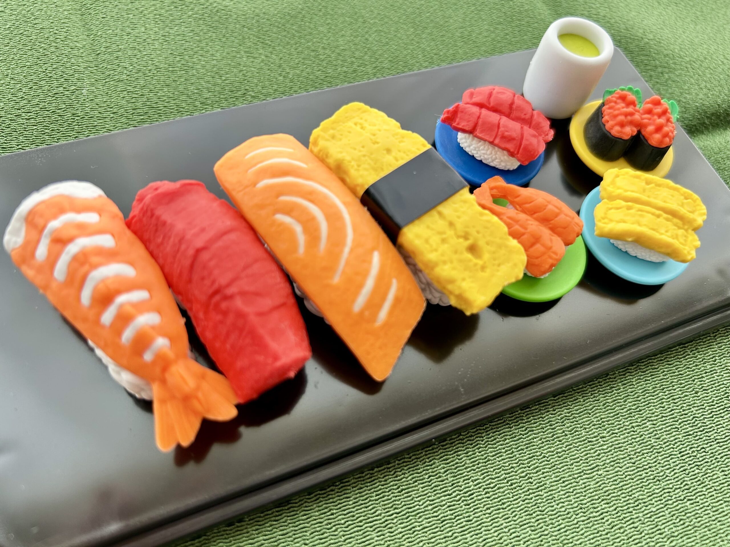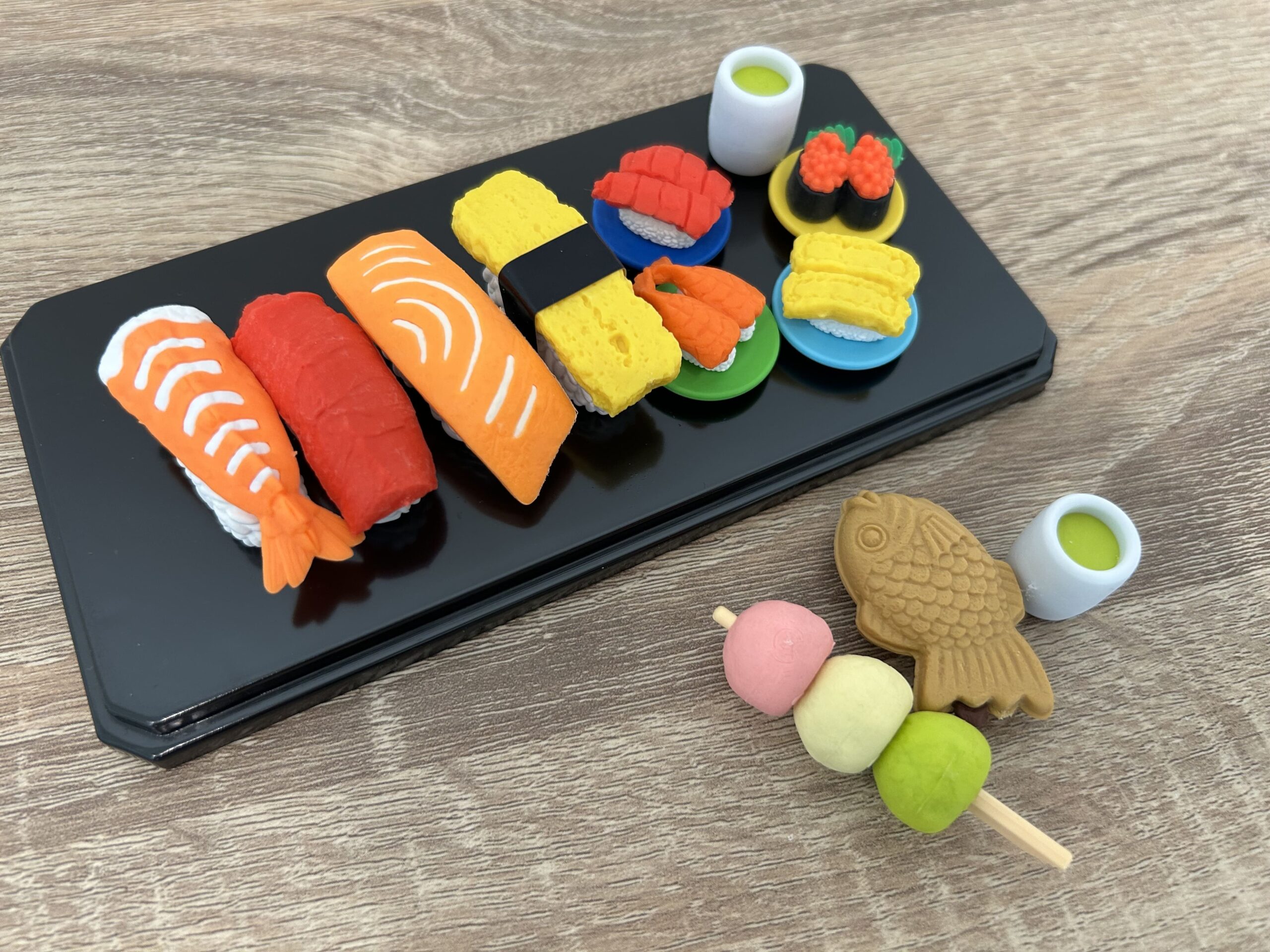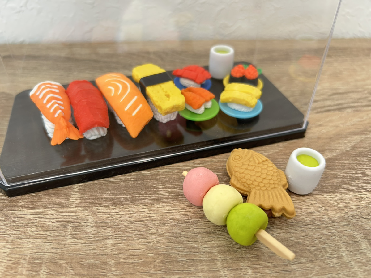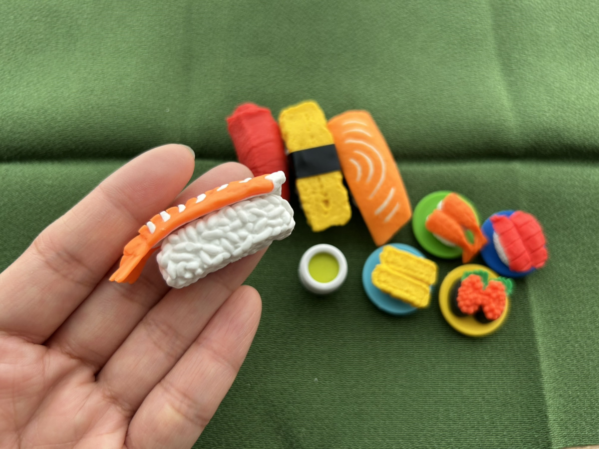 When you place them next to the sushi erasers, the Japanese vibe really comes alive—it’s just too cute!