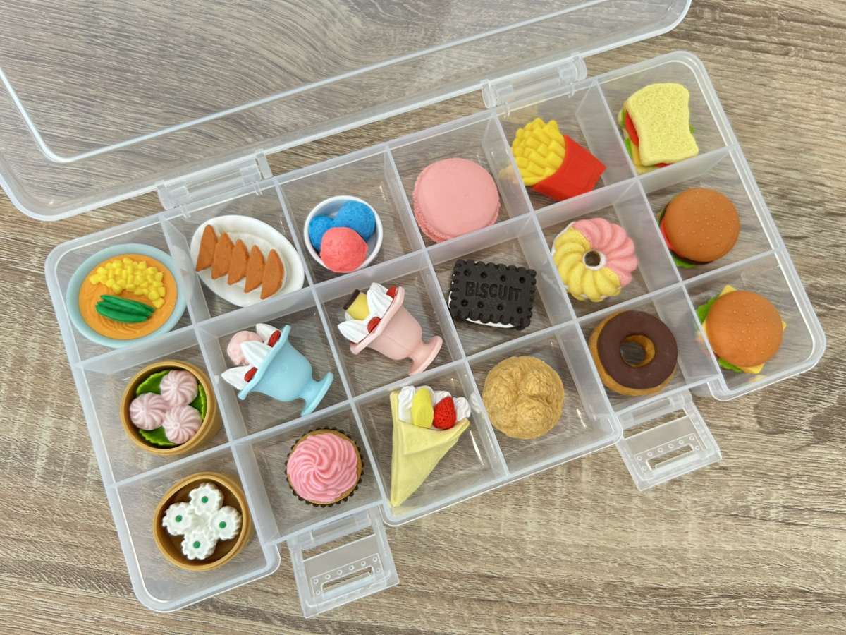 You can also find cases to display your cute erasers at DAISO. Special display cases protect them from dirt and are perfect for showcasing them neatly.
