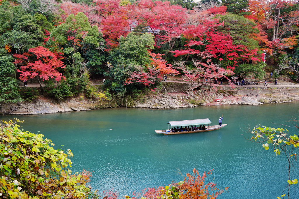 Một trong những cách tuyệt vời nhất để thưởng ngoạn mùa thu ở đây là ngắm từ mặt nước. Đi Hozugawa River boat ride hoặc thuyền yakata-bune (thuyền truyền thống kiểu Nhật) cho phép du khách chiêm ngưỡng màu sắc mùa thu từ góc nhìn độc đáo, khi cây cối và núi đồi phản chiếu trên mặt nước. Vé có thể mua trực tiếp tại chỗ hoặc đặt trước.