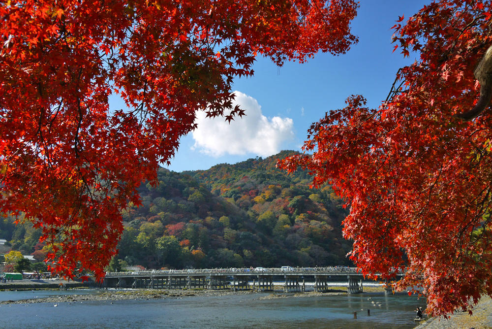 Arashiyama là một trong những điểm đến mùa thu nổi tiếng nhất ở Kyoto, với nhiều thắng cảnh như Togetsukyo Bridge, Arashiyama ParkBamboo Grove. Sắc đỏ của lá phong và vàng của lá bạch quả nhuộm cả khu vực trong sắc thu ấm áp, phản chiếu hoàn hảo xuống dòng sông Katsura.