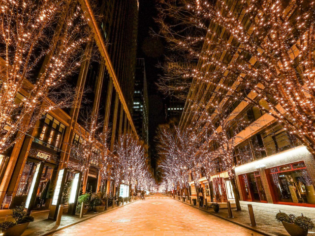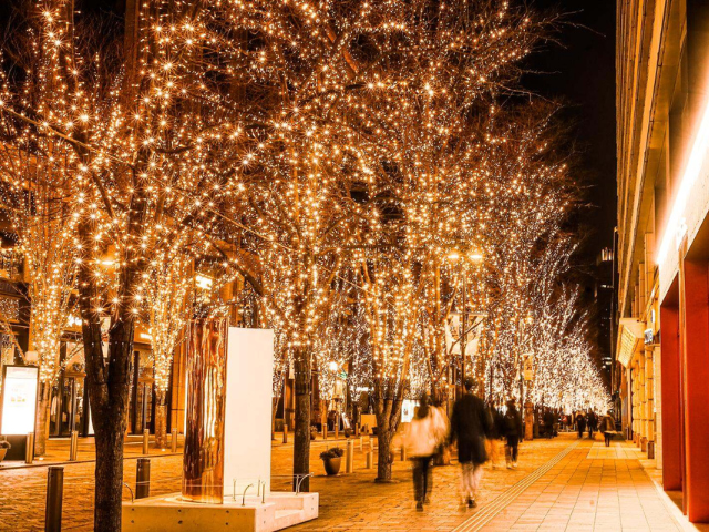 This annual event lights up the 1.2-kilometer stretch of Marunouchi Nakadori Avenue with about 1.2 million champagne-gold bulbs. Now in its 24th year, the illumination bathes the entire district in a gentle, elegant glow that fills the city with warmth.