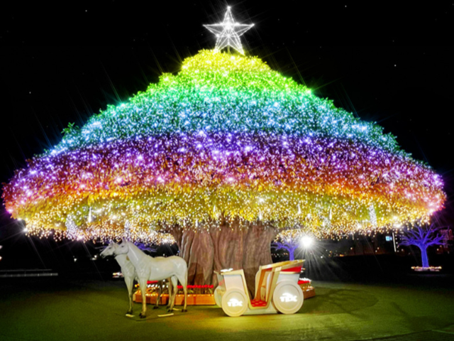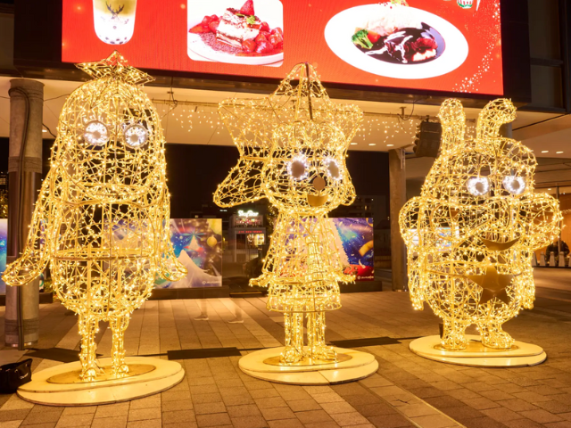 One of Tokyo’s most iconic winter destinations, Tokyo Skytree Town® shines with about 530,000 lights throughout the season. At the Sky Arena, an 8-meter-tall Christmas tree and a glowing Pegasus carriage create a magical holiday scene, while Solamachi Plaza features a giant display of the popular mascot Sorakara-chan called “Twinkle Three Stars”—perfect for photos.