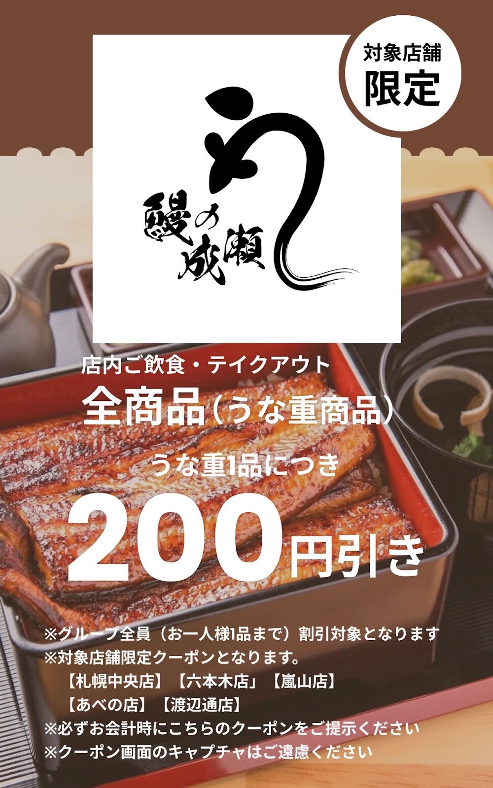 ・Get ¥200 off each unajū order.