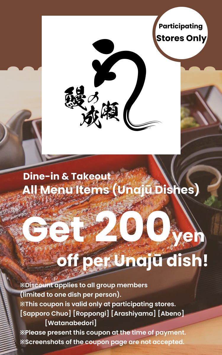 ・Each person can receive a discount for one unajū only; discounts cannot exceed the actual number of dishes ordered.