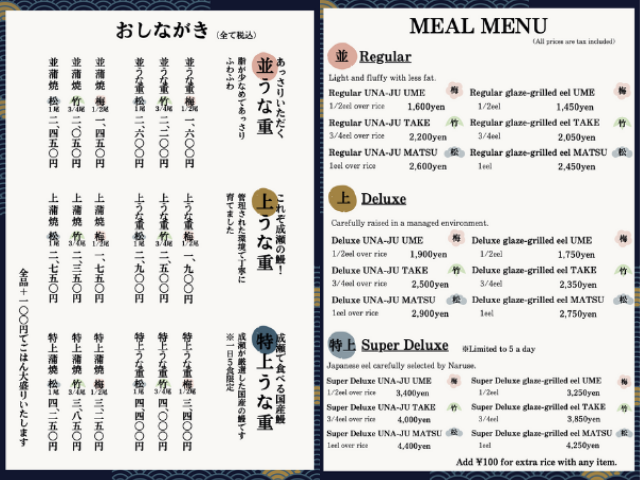 ★ All unajū menu options come with the same portion of rice.