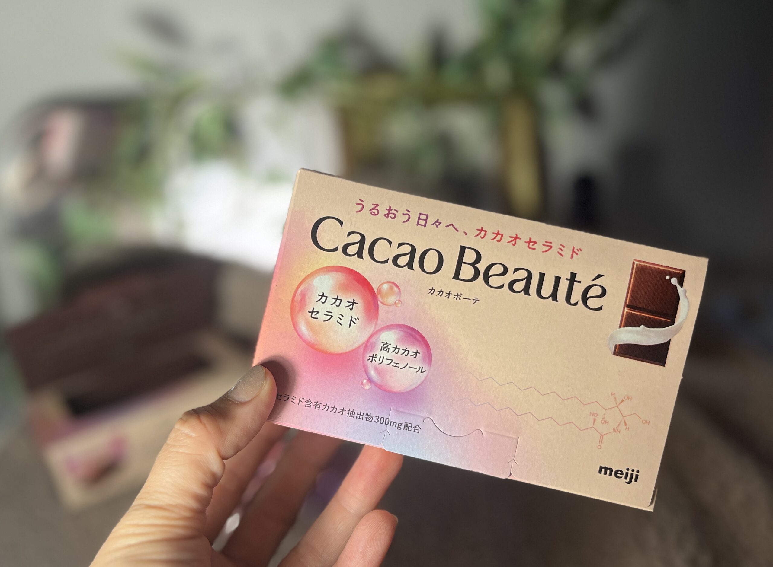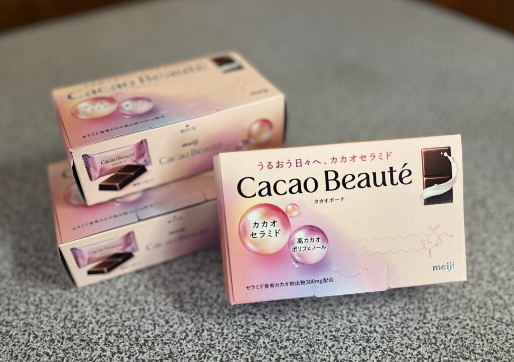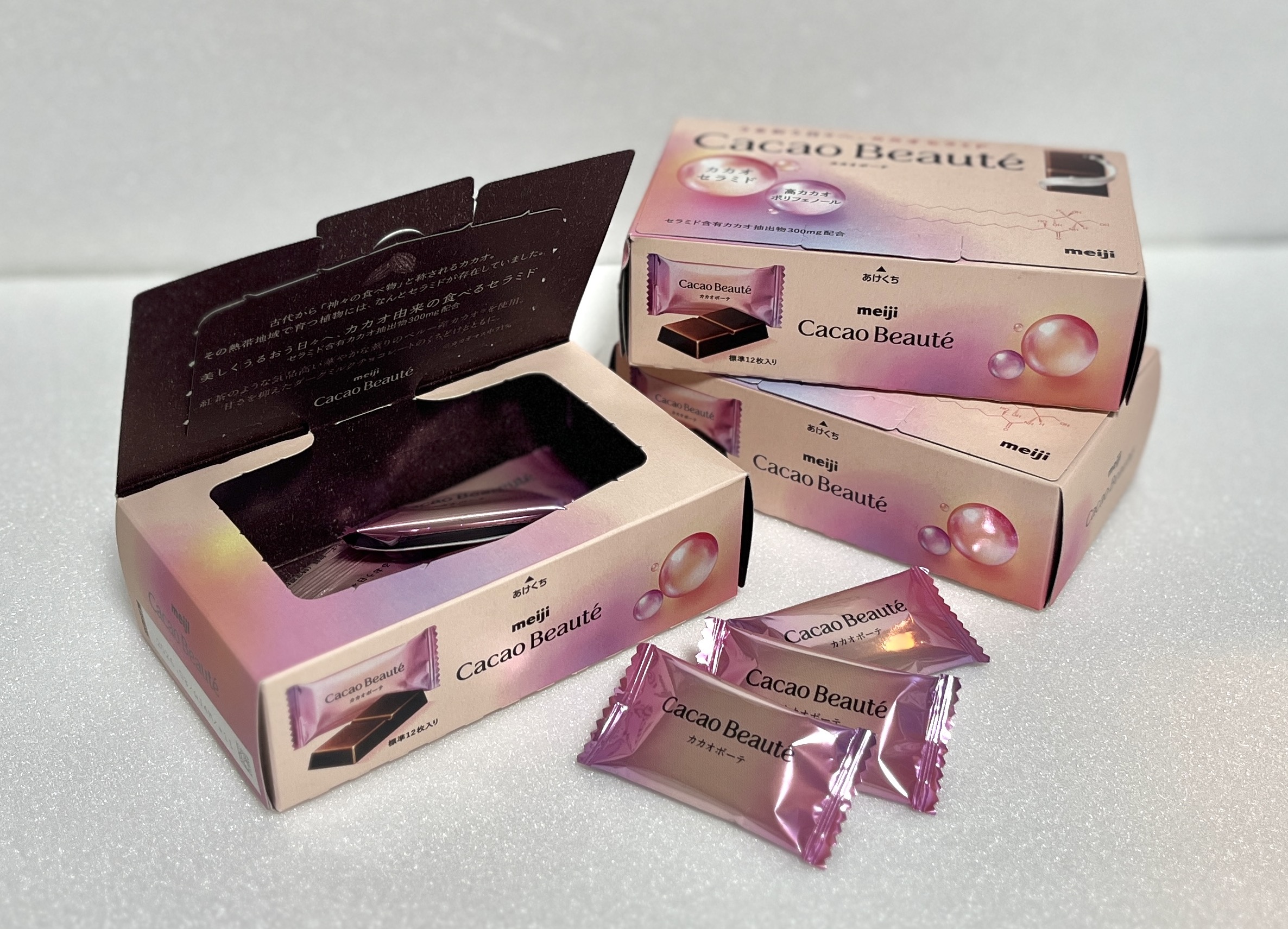 Đây là “Cacao Beauté (Cacao Bote)” – sô-cô-la sữa có chứa “Cacao Ceramide × Polyphenol”, được phát triển bởi hãng sô-cô-la Nhật Bản Meiji.