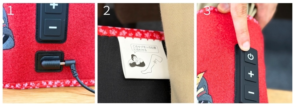 약 390g의 가벼운 무게이며, 사용하지 않을 때는 접어서 컴팩트하게 보관할 수 있습니다. 넓은 벨크로 타입으로 착용이 간편하고, 전원을 켠 후 약 10분 후 자동으로 정지하는 안전 설계도 안심할 수 있는 포인트입니다.