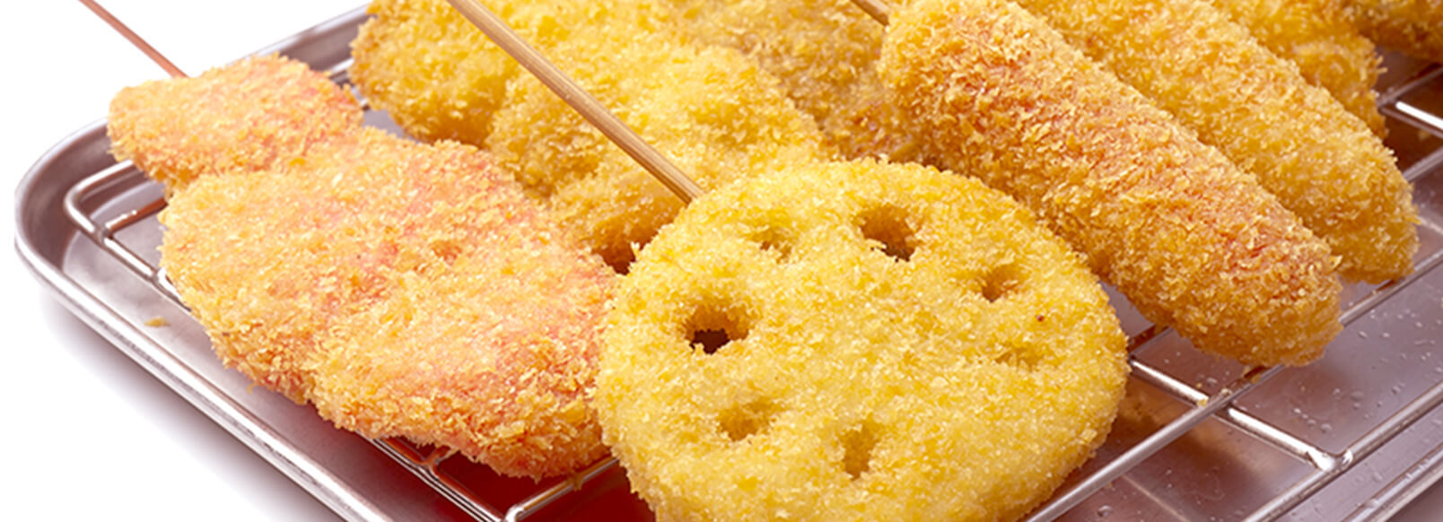 Japanese izakaya are casual pubs where you can enjoy drinks and a wide variety of small dishes in a relaxed setting. Kushikatsu, a specialty from Osaka, features skewered ingredients coated in crispy batter and deep-fried to perfection. The crunch alone is worth it.