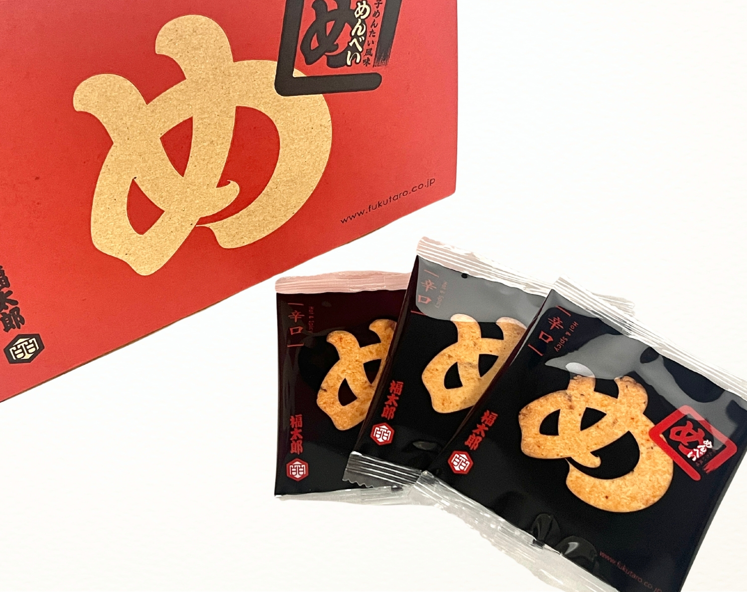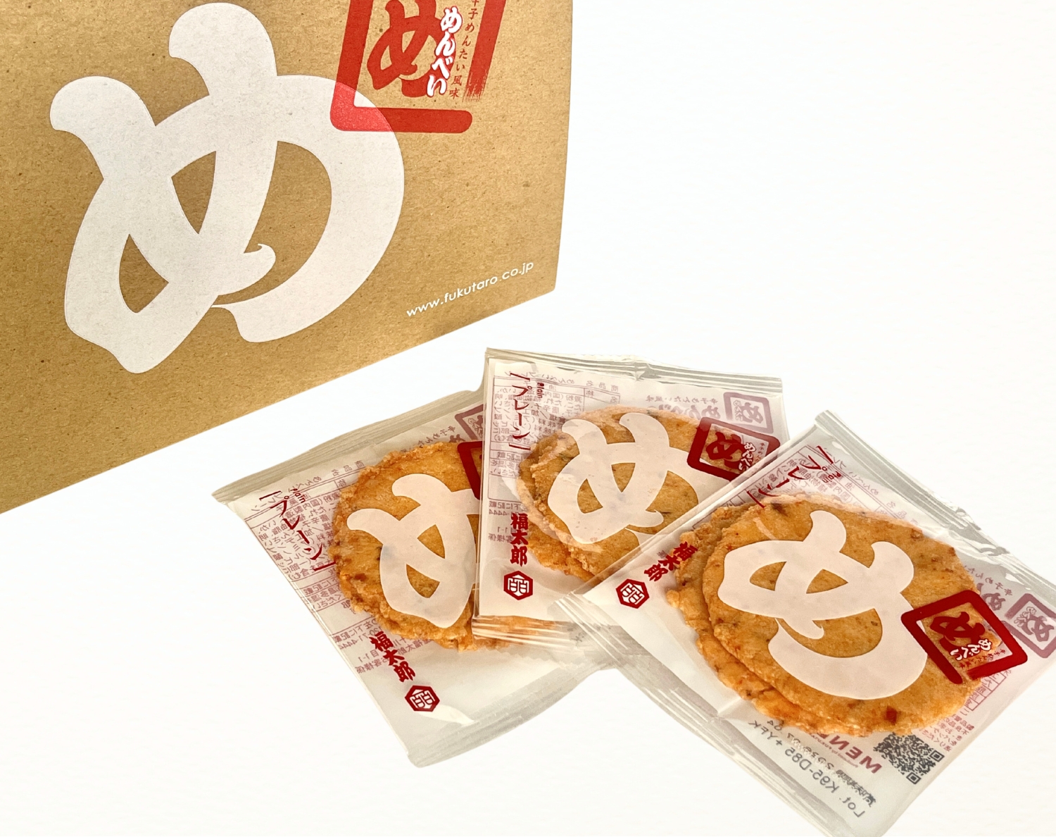 Menbei – bánh gạo mentaiko đã trở thành biểu tượng của Fukutaro. Được bán tại Fukuoka và nhiều nơi khác như món quà lưu niệm mới nổi của Hakata. Nổi bật với độ giòn rụm, có thể ăn nhiều miếng liền, cùng vị cay vừa phải và vị umami hải sản(Thông tin chính thức)