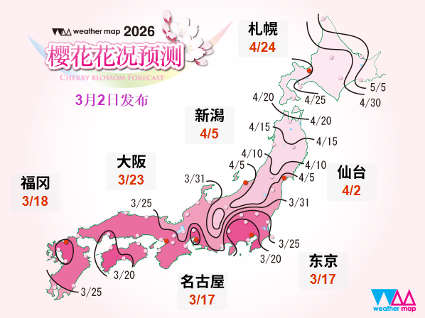 樱花的开花时间会因地区和天气而有很大的变化。因此,在规划旅行时,随时关注樱花开花预测是一个重要的要点!
